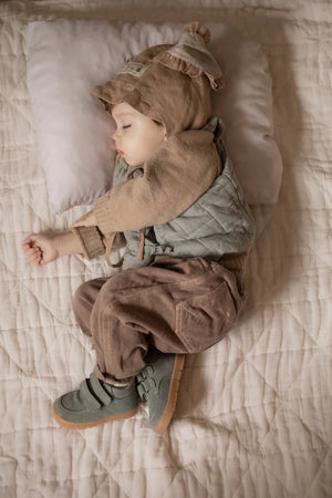 Nous fabriquons nos chaussures en utilisant des matériaux écologiques de haute qualité et des méthodes minimisant les produits chimiques nocifs, pour assurer la sécurité de vos enfants
