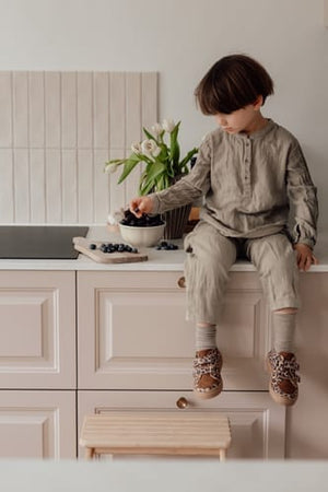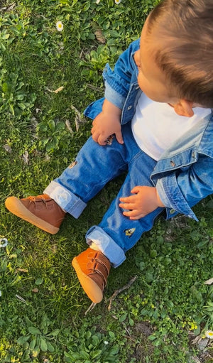 Nous fabriquons nos chaussures en utilisant des matériaux écologiques de haute qualité et des méthodes minimisant les produits chimiques nocifs, pour assurer la sécurité de vos enfants