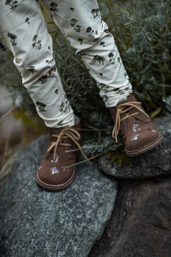 « Ma fille est obsédée par ces petites bottes ! Les petits détails woodland sont super, elle adore pointer du doigt les champignons et les feuilles quand elle les enfile. Elles sont confortables, faciles à enfiler et vont avec tout. Elle adore vadrouiller avec, alors j’aime qu’elles soient robustes et bien faites. Ce sont les plus mignonnes bottes d’automne que nous avons jamais eu ! »