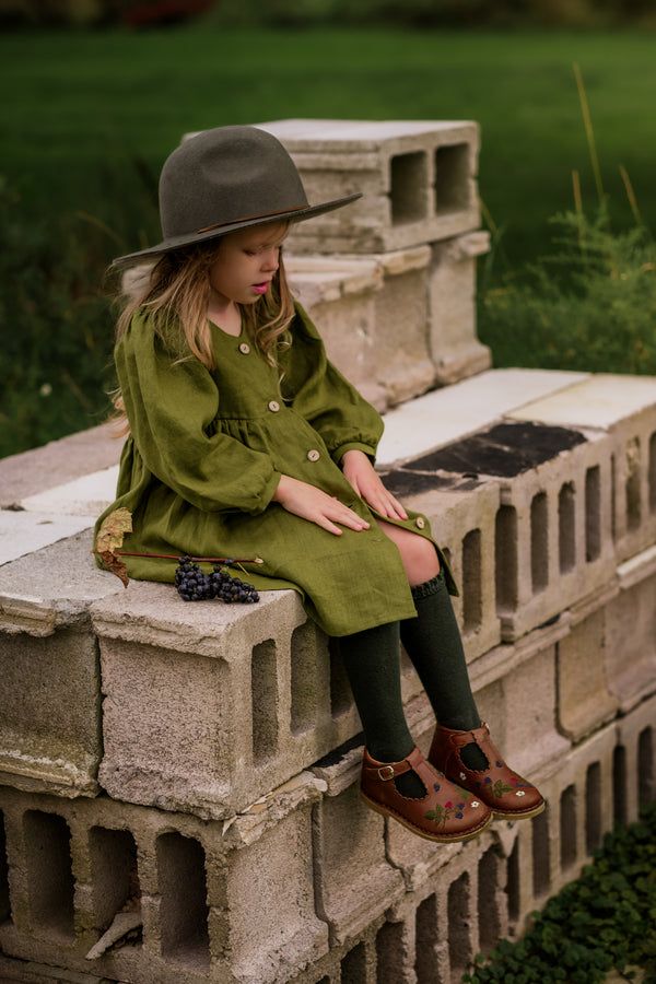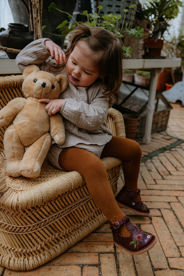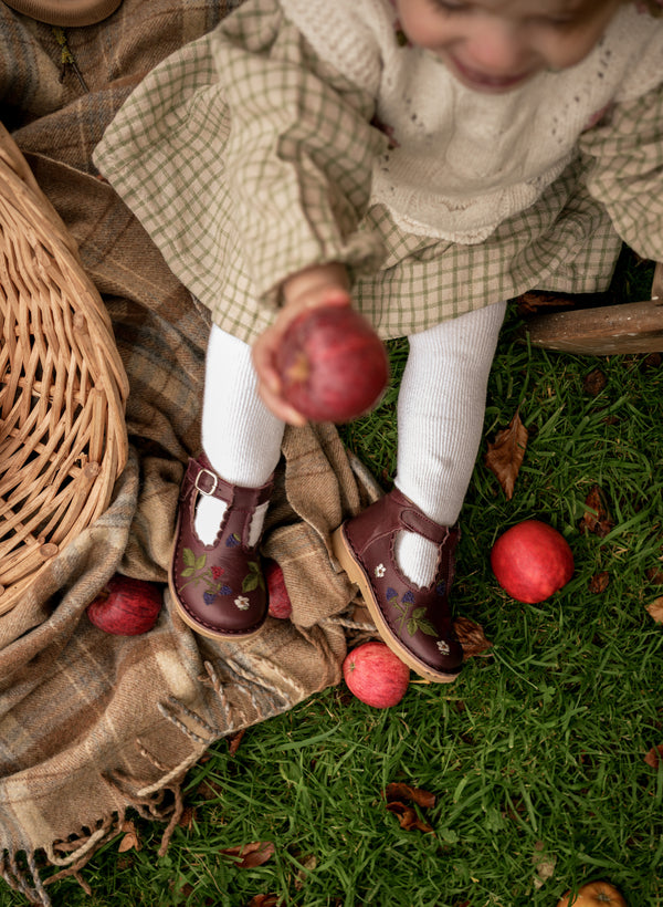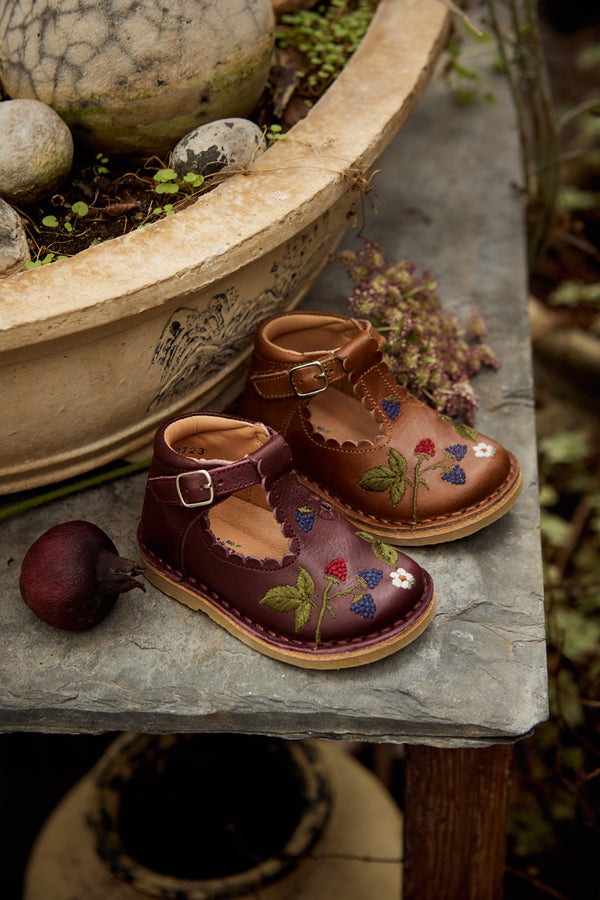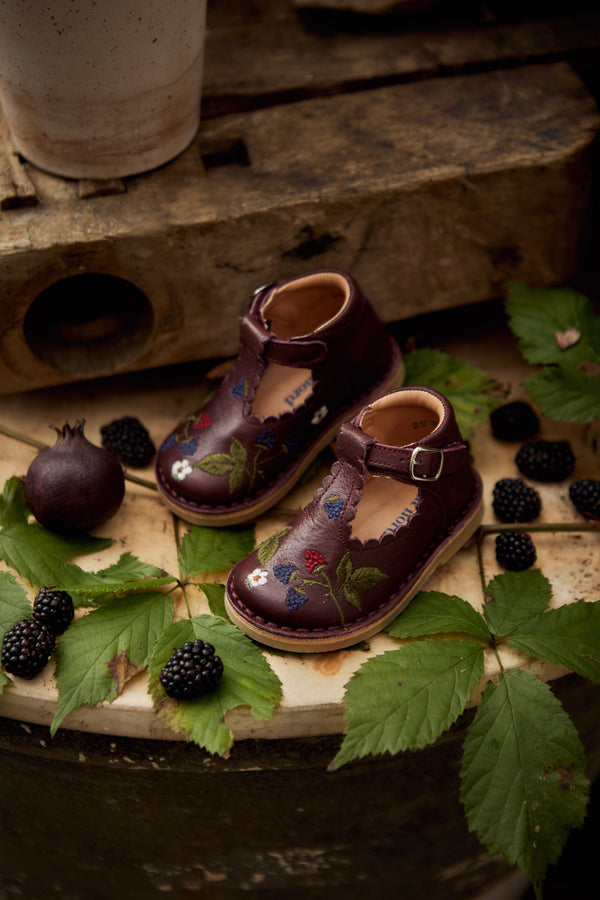 La bordure festonnée, signature de Petit Nord, a été ajoutée le long de la bride en T, ce qui rend ce modèle féminin irrésistible.