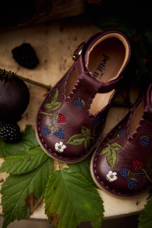 Ces bottes sont ornées de broderies de mûres et de leur magnifique feuillage.