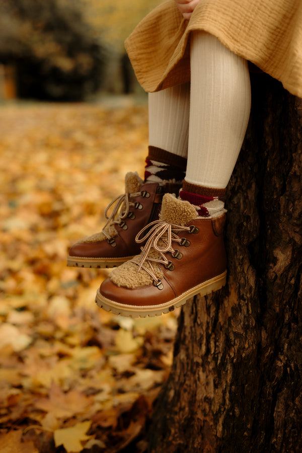 Nos bottes d'hiver TEX Classic sont fabriquées en cuir avec une doublure en laine 100 % naturelle, gardant les petits pieds bien au chaud et au sec pendant les mois les plus froids.