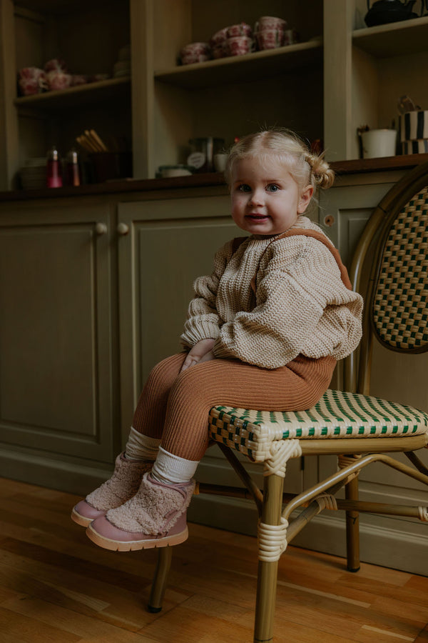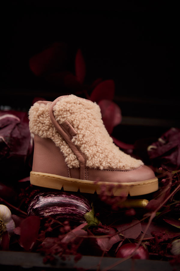 Le plus dodu des dodus ! Cette mignonne petite botte de départ est ornée de laine bouclée épaisse, lui donnant un look adorable de mini ours que les parents adoreront offrir à leurs petits oursons ! La Bear Boot est dotée d'une doublure en laine 100% naturelle, gardant les petits pieds bien au chaud pendant les mois les plus froids. La grande fermeture latérale en velcro permet à tout enfant d'enfiler et de retirer facilement ses bottes. La semelle est légère et flexible, parfaite pour les tout-petits. Toutes les chaussures sont fabriquées à la main avec des cuirs et des suédines 100% naturels, 100% tannés végétal, 100% biodégradables et 100% sans chrome.