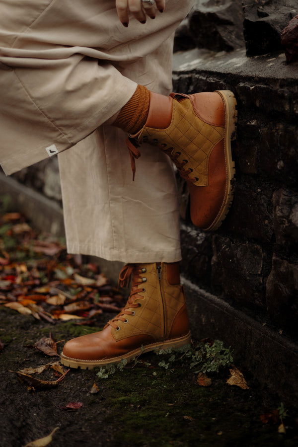 La chaussure est fabriquée avec une doublure naturels et sans chrome et possède une semelle TR légère et recyclée.